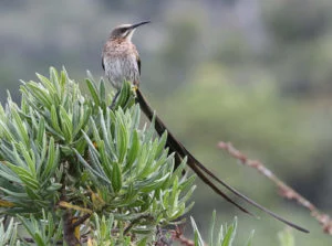 DAY 4: We left Cape Town early and drove east. We had been told not to bother with Sir Lowry’s Pass but to stop at the point mentioned between Gordon’s Bay and Betty’s Bay for Cape Rockjumper, which breeds there. We were lucky and found it, along with Cape Rockthrush and Cape Sugarbird as well. Then onto the Stony Point Penguin Colony at Betty’s Bay. Great views of the penguins and all 4 cormorants – including the Crowned Cormorants that we had missed in Cape Town. Then lunch and another great birding opportunity at the Harold Porter Botanical Gardens on the other side of Betty’s Bay.